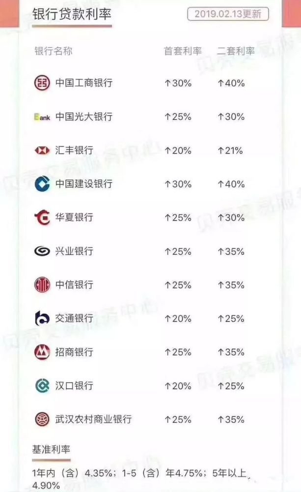 根據(jù)貝殼交易服務(wù)中心公布的最新數(shù)據(jù),截止到2月13日,武漢主流銀行首套房貸利率仍上浮25%以上,僅有匯豐銀行、漢口銀行、交通銀行3家銀行下調(diào)至上浮20%。